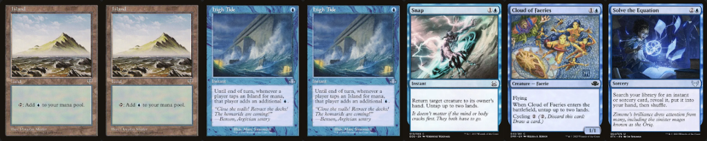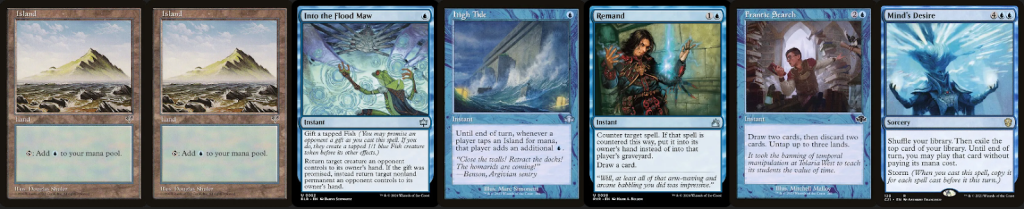 In this section I will be documenting all major changes to High Tide after the initial writing of this primer in August of 2024. I will not be documenting every small change to the 75 as I am constantly testing new sideboard options, cantrip price spreads, new hot tech, and whatever else. Whenever there is a massive change to the strategy or an important new card gets introduced I will add a timestamped decklist and discuss the changes as well as the mindset behind them. I will not be editing any of the above primer as the teachings in them are all still relevant to the strategy as a whole, so further evolutions on the archetype will be documented here. I linked it before, but this is the list I am currently playing in paper.