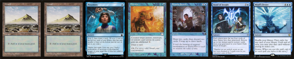 The changes made for SCGCon Baltimore were made over the summer of 2025 and were relatively simple choices. Gifts Ungiven got unbanned in commander, spiking the price a relatively decent amount, and Flusterstorm similarly has been creeping back up. Gifts Ungiven became an additional copy of Bond of Insight which has felt quite good. Having a second copy means that firing one off for value early on isn’t as sketchy as it used to be, and it makes finding a copy to loop later much easier. Flusterstorm became an additional cantrip in the form of Sleight of Hand. If the budget allows, this could very easily be a copy of Ponder. Ponder loses a lot of percentage points without fetchlands, but there’s enough deck manipulation around that one or two copies is usually pretty powerful.